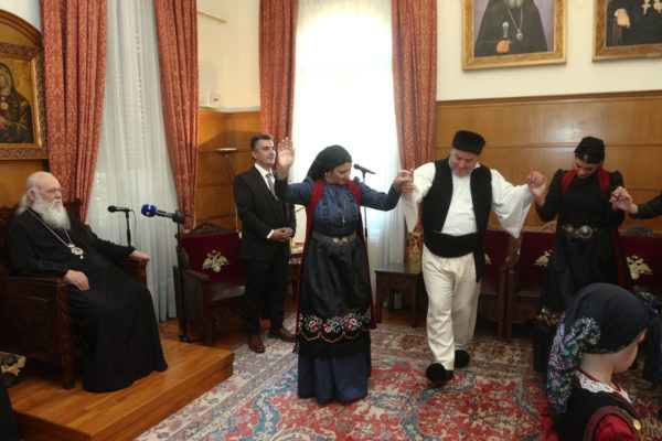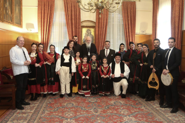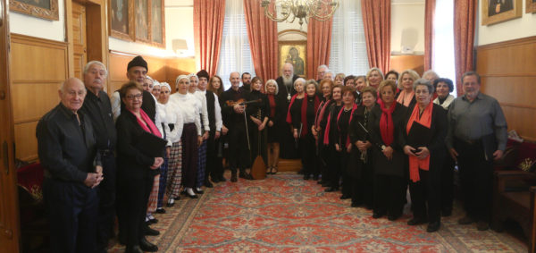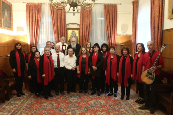 Παραδοσιακά τραγούδια και χριστουγεννιάτικα κάλαντα έψαλαν από το πρωί φορείς, χορωδίες και σύλλογοι από όλη την χώρα στον Αρχιεπίσκοπο Αθηνών και πάσης Ελλάδος κ.κ. Ιερώνυμο.