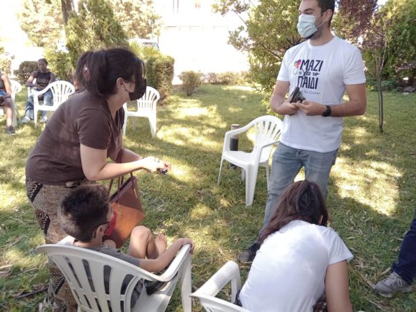 Τα παπούτσια στο χώρο έφτασαν με το Βαν της Ένωσης «Μαζί για το Παιδί» και έφεραν οι Λουκάς Μάθας και Λευτέρης Θεοδωρακόπουλος.