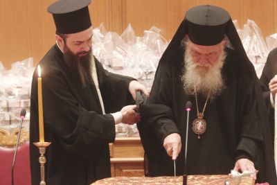 Την Πρωτοχρονιάτικη Βασιλόπιτα της Ιεράς Συνόδου της Εκκλησίας της Ελλάδος ευλόγησε πριν απο λίγο ο Αρχιεπίσκοπος Αθηνών και πάσης Ελλάδος κ. Ιερώνυμος στην μεγάλη αίθουσα συνεδριάσεων της Ιεραρχίας της Εκκλησίας της Ελλάδος. Ο Αρχιεπίσκοπος ευχήθηκε ο Θεός να χαρίσει μια χρονιά ευλογημένη σε όλους και κυρίως στην πατρίδα μας, να ανοίξει δρόμους ειλικρινούς συνεργασίας. Παρέστησαν αρκετοί αρχιερείς, καθηγητές πανεπιστημίου, κληρικοί και λαϊκοί συνεργάτες της Ιεράς Συνόδου.