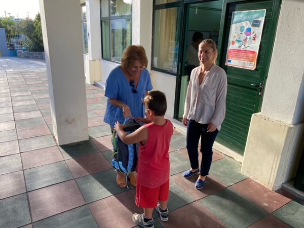 Ακολούθως τα μέλη του Δ.Σ του ΚΕ.Σ.Ο.-Εκκλησιαστικό ίδρυμα της ΙΑΑ Μαρία Τάταρη και Σοφία Κώνστα- Πέππα μαζί με τη Διευθύντρια του Εκκλησιαστικού Ιδρύματος και τον Κωνσταντίνο Σαλεβουράκη μοίρασαν παρουσία της Δημάρχου κας Μαρία Κακαλή, της Αντιδημάρχου κας Στέλλα Σπανού και εκπαιδευτικών, σχολικές τσάντες γεμάτες με σχολικό υλικό, είδη ατομικής υγιεινής & ζαχαρωτά. Ακόμα η κα Μαίρη Πίνη Διευθύντρια του Κ.Ε.Σ.Ο. παρέδωσε στη δημιουργική δήμαρχο του Άη Στράτη κα Μαρία Κακαλή ποσότητα 62 βιβλίων (σχολικών, παιδικών & Εφηβικών) για τον εμπλουτισμό της σχολικής βιβλιοθήκης.