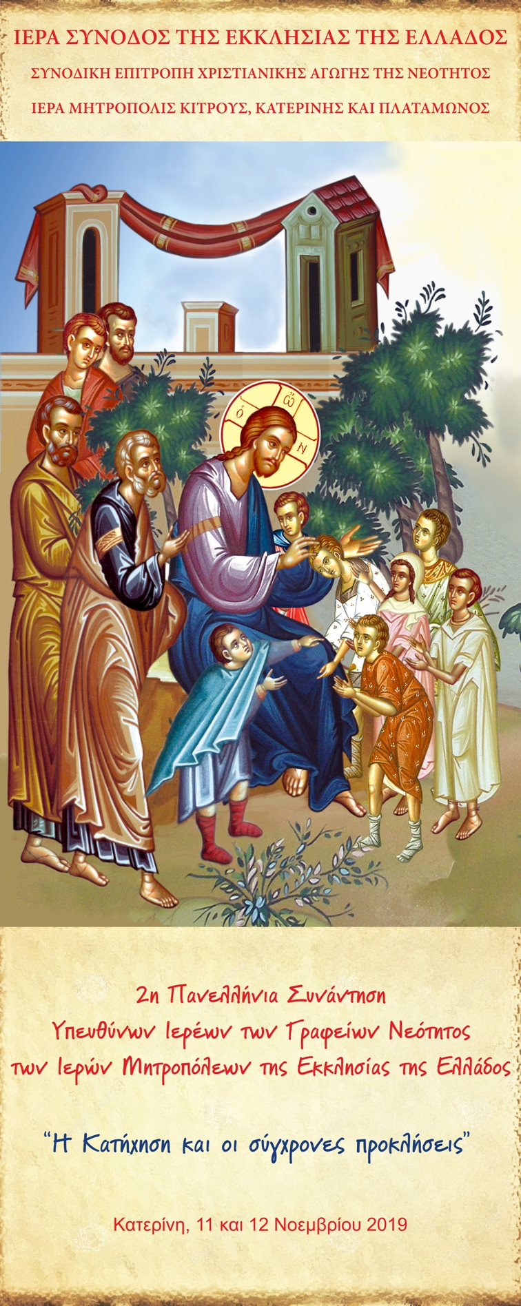 Η πανελλήνια αυτή συνάντηση διεξήχθη υπό την Προεδρία του Σεβασμιωτάτου Μητροπολίτου Σιδηροκάστρου κ. Μακαρίου, Προέδρου της Συνοδικής Επιτροπής Χριστιανικής Αγωγής της Νεότητος και φιλοξενήθηκε από τον Σεβασμιώτατο Μητροπολίτη Κίτρους, Κατερίνης και Πλαταμώνος κ. Γεώργιο.
