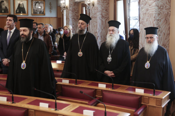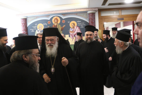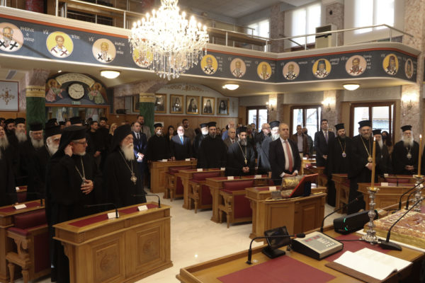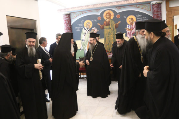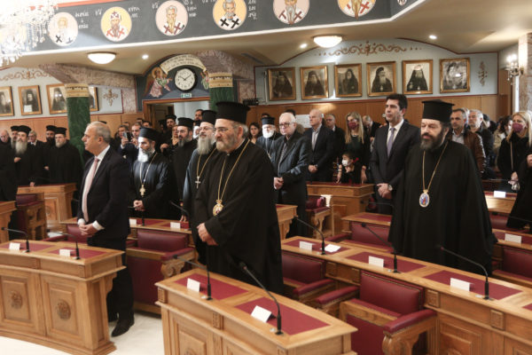 Παραβρέθηκαν ο Εκπρόσωπος του Γραφείου του Οικουμενικού Πατριαρχείου στην Αθήνα Σεβασμιώτατος Μητροπολίτης Λαοδικείας κ. Θεοδώρητος, ο Εκπρόσωπος του Πατριαρχείου Αλεξανδρείας στην Αθήνα Σεβασμιώτατος Μητροπολίτης Γουινέας κ. Γεώργιος, ο Έξαρχος του Παναγίου Τάφου στην Αθήνα Πανοσιολογιώτατος Αρχιμανδρίτης κ. Ραφαήλ, ο Σεβασμιώτατος Συνοδικός Μητροπολίτης Νικαίας κ. Αλέξιος, οι Σεβασμιώτατοι Μητροπολίτες Πειραιώς κ. Σεραφείμ, Σερρών και Νιγρίτης κ. Θεολόγος, Νέας Σμύρνης κ. Συμεών, Μεσογαίας και Λαυρεωτικής κ. Νικόλαος, Κρήνης κ. Κύριλλος, Ιλίου, Αχαρνών και Πετρουπόλεως κ. Αθηναγόρας, Κηφισίας, Αμαρουσίου, Ωρωπού και Μαραθώνος κ. Κύριλλος, Νέας Ιωνίας, Φιλαδελφείας, Ηρακλείου και Χαλκηδόνος κ. Γαβριήλ, Γλυφάδας, Ελληνικού, Βούλας, Βουλιαγμένης και Βάρης κ. Αντώνιος, Μεγάρων και Σαλαμίνος κ. Κωνσταντίνος, οι Πανιερώτατοι Μητροπολίτες Φαναρίου κ. Αγαθάγγελος και Θαυμακού κ. Ιάκωβος, οι Θεοφιλέστατοι Επίσκοποι Σταυροπηγίου κ. Αλέξιος, Φωτικής κ. Νεκτάριος, Θεσπιών κ. Παύλος, Τανάγρας κ. Απόστολος και Καρυουπόλεως κ. Νεκτάριος, ο Αρχιγραμματεύς της Ιεράς Συνόδου της Εκκλησίας της Ελλάδος Πανοσιολογιώτατος Αρχιμανδρίτης κ. Ιωάννης Καραμούζης, ο Πρωτοσύγκελλος της Ιεράς Αρχιεπισκοπής Αθηνών Πανοσιολογιώτατος Αρχιμανδρίτης κ. Βαρνάβας Θεοχάρης, Ακαδημαϊκοί, οι Γραμματείς των Συνοδικών Επιτροπών, Κληρικοί και λαϊκοί Υπάλληλοι των Διοικητικών Υπηρεσιών της Εκκλησίας.