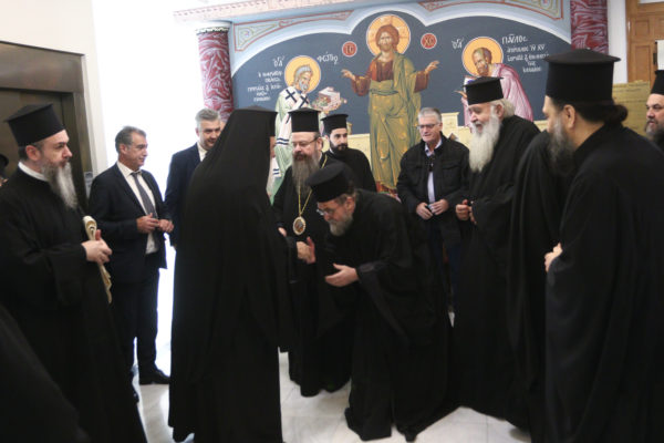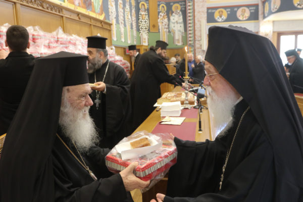 Ακολούθως οι Κληρικοί και οι λαϊκοί Υπάλληλοι των Γραφείων της Ιεράς Συνόδου αντευχήθηκαν στον Μακαριώτατο, λαμβάνοντας από εκείνον παραδοσιακά εορταστικά εδέσματα.
