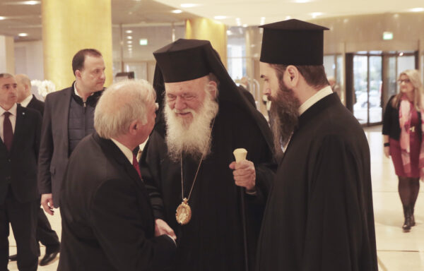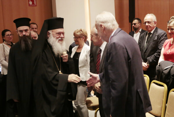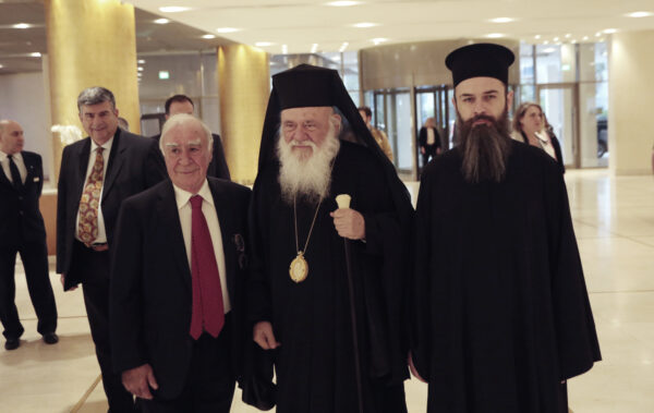 Στην παρουσίαση του τρίτομου έργου του καθηγητού κ. Ιωάννη Μπράμη, με θέμα «Η ΧΕΙΡΟΥΡΓΙΚΗ ΤΩΝ ΕΛΛΗΝΩΝ δια μέσου των αιώνων, από την αρχαιότητα μέχρι τον 21ο αιώνα», κατά την Τετάρτη 17 Απριλίου 2019, στο Ξενοδοχείο Hilton Athens, αίθουσα «Τερψιχόρη», παρέστη ο Αρχιεπίσκοπος Αθηνών και πάσης Ελλάδος, κ.κ. Ιερώνυμος. Παρευρέθη, επίσης, ο πρώην Πρωθυπουργός, κ. Κώστας Καραμανλής, συνοδευόμενος απο τη σύζυγο του, Νατάσσα.