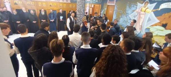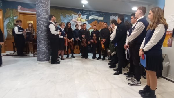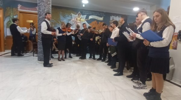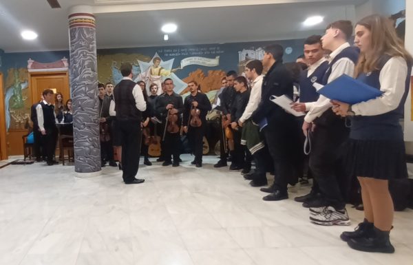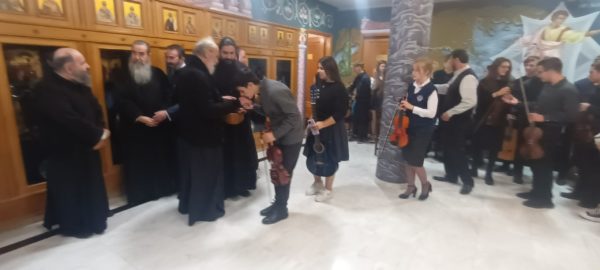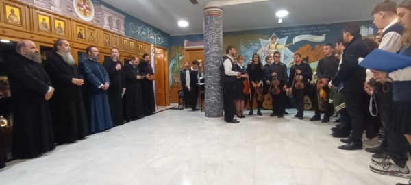 Πολυμελής χορωδία και ορχήστρα αποτελούμενη από μαθητές της Ριζαρείου Εκκλησιαστικής Σχολής Αθηνών επισκέφθηκε σήμερα, Τετάρτη 20 Δεκεμβρίου, τα Γραφεία της Ιεράς Συνόδου της Εκκλησίας της Ελλάδος.