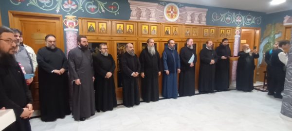 Ο Πανοσιολογιώτατος Αρχιγραμματεύς καλωσόρισε τους καθηγητές και τους μαθητές της Ριζαρείου Εκκλησιαστικής Σχολής στην Ιερά Σύνοδο και αφού τους μετέφερε τις εόρτιες ευχές του Μακαριωτάτου Αρχιεπισκόπου Αθηνών και πάσης Ελλάδος κ. Ιερωνύμου, τους ευχήθηκε όσα έψαλαν σήμερα να τα έχουν ως βίωμα και να τα μεταφέρουν στην καθημερινή ζωή τους.