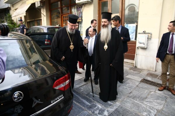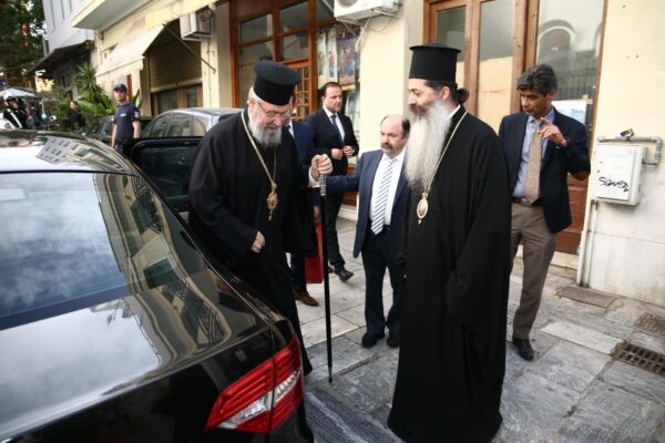 Λίγα λεπτά μετά τις 18:00 το απόγευμα  ο Μακαριώτατος Αρχιεπίσκοπος Κύπρου κ. Χρυσόστομος έφτασε στην Ιερά Αρχιεπισκοπή Αθηνών, όπου τον υποδέχθηκε εγκάρδια  ο Μακαριώτατος Αρχιεπίσκοπος Αθηνών κ.κ. Ιερώνυμος μαζί με τον Πρωτοσύγκελο Θεοφιλέστατο Επίσκοπο Θεσπιών κ Συμεών.