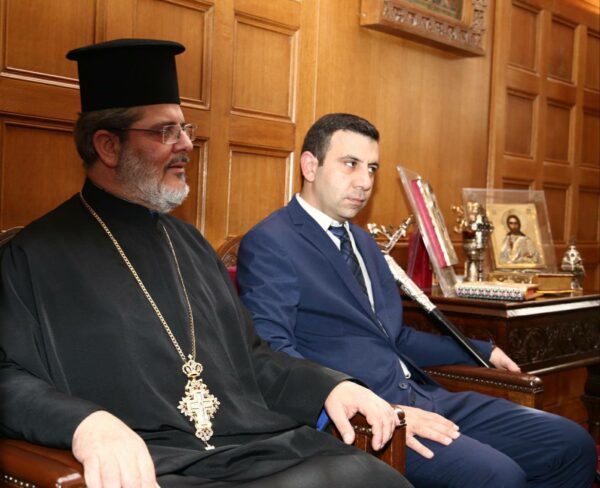 Τον Αρχιεπίσκοπο Κύπρου συνόδευε ο Πρωτοσύγκελος της Αρχιεπισκοπής Κύπρου.