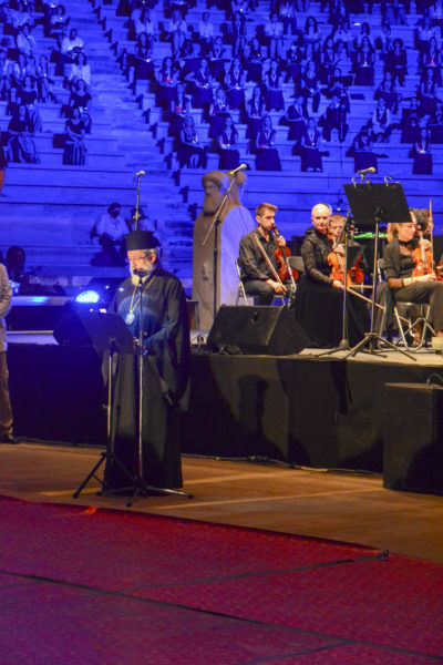 Πρίν σας παραδώσω στον λόγο και τη μουσική, θα ήθελα να μοιραστώ μαζί σας μια μεγάλη μου χαρά: Αποψε παρουσιάζονται ενώπιόν μας για πρώτη φορά τα νεοσύστατα μουσικά σύνολα της Εκκλησίας της Ελλάδος. Εύχομαι και προσεύχομαι, η αποψινή εκδήλωση να αποτελέσει την αρχή υπέροχων γεγονότων που θα βοηθήσουν το πνευματικό και ποιμαντικό έργο της Εκκλησίας μας.»