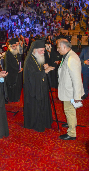 Την ευθύνη της σημερινής συναυλίας ανέλαβαν δύο συνοδικές επιτροπές, η Συνοδική Επιτροπή Χριστιανικής Αγωγής της Νεότητος υπό την προεδρία του Σεβασμιωτάτου Μητροπολίτη Σιδηροκάστρου κ. Μακάριου και η Επιτροπή Πολιτιστικής Ταυτότητος υπό την προεδρία του Σεβασμιωτάτου Μητροπολίτη Δημητριάδος και Αλμυρού κ. Ιγνατίου. Τους ευχαριστώ θερμά, όπως και τους Γραμματείς των επιτροπών αυτών πανοσιολ. Αρχιμ.. π. Πολύκαρπο Μπόγρη και Πανοσιολ. Αρχιμ. π. Βαρθολομαίο Αντωνίου- Τριανταφυλλίδη.