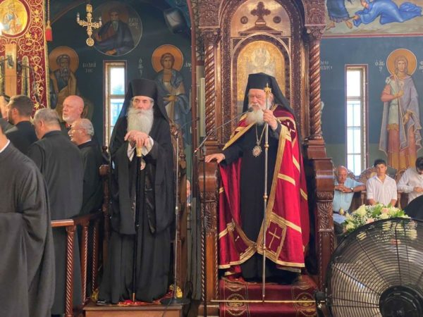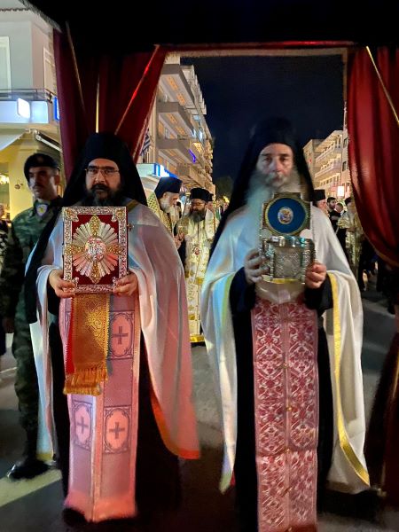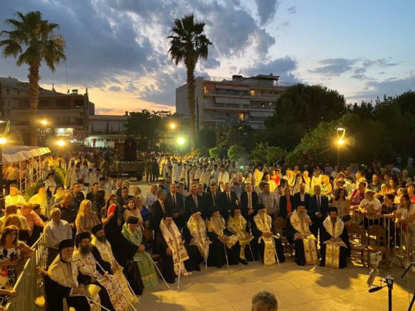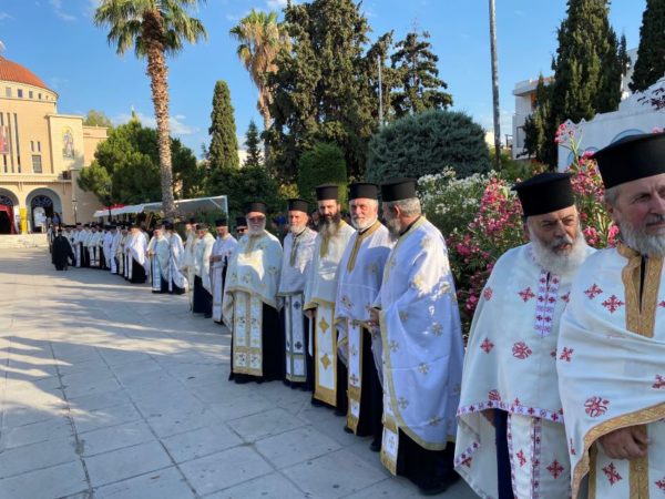 Στις 7:00 το απόγευμα με κάθε επισημότητα και με την δέουσα εκκλησιαστική τάξη τελέσθηκε ο καθιερωμένος πλέον Μέγας Συνοδικός, Πολυαρχιερατικός Εσπερινός προεξάρχοντος του Μακαριωτάτου Αρχιεπισκόπου Αθηνών και πάσης Ελλάδος κ. κ. Ιερωνύμου Β’, πλαισιουμένου υπό των Συνοδικών Μητροπολιτών, Ελασσώνος κ. Χαρίτωνος, Γόρτυνος και Μεγαλοπόλεως κ. Νικηφόρου, Αιτωλίας και Ακαρνανίας κ. Δαμασκηνού, καθώς και υπό των προσκεκλημένων υπό του οικείου Μητροπολίτου Κορίνθου κ. Διονυσίου και εγκεκριμένων υπό της Ιεράς Συνόδου Σεβασμιωτάτων Μητροπολιτών, Πειραιώς κ. Σεραφείμ, Χαλκίδος κ. Χρυσοστόμου, Ζιχνών και Νευροκοπίου κ. Ιεροθέου, Μεσσηνίας κ. Χρυσοστόμου, Ηλείας κ. Αθανασίου, του Πανιερωτάτου Μητροπολίτου Φαναρίου κ. Αγαθαγγέλου, των Θεφιλεστάτων Επισκόπων Τεγέας κ. Θεοκλήτου, Λακεδαιμονίας κ. Θεοφίλου, Σκοπέλου κ. Νικοδήμου, Κεγχρεών κ. Αγαπίου, Πρωτοσυγκέλλου της Ιεράς Μητροπόλεως Κορίνθου καθώς και του Σεβασμιωτάτου Μητροπολίτη Κορίνθου κ. Διονυσίου.