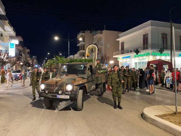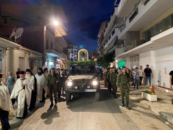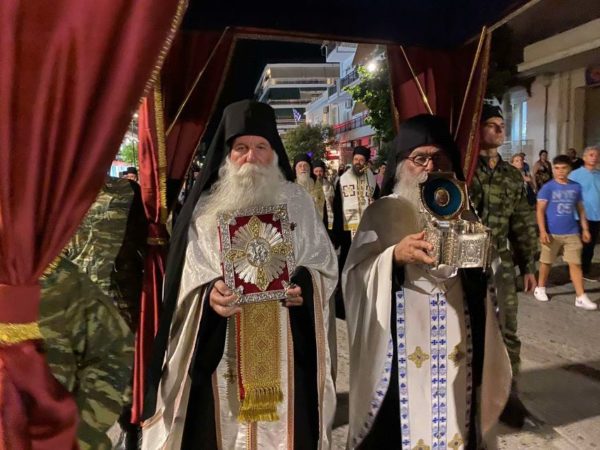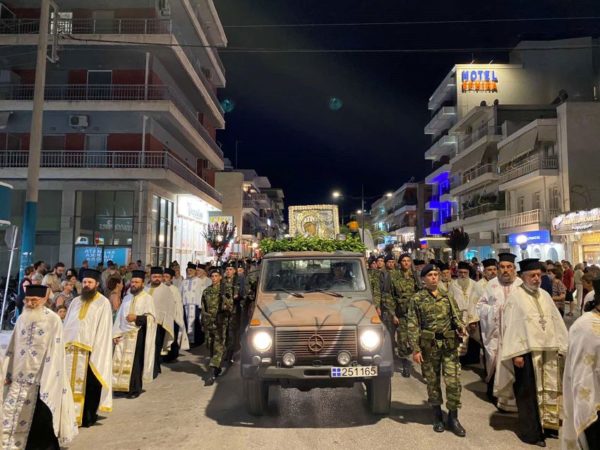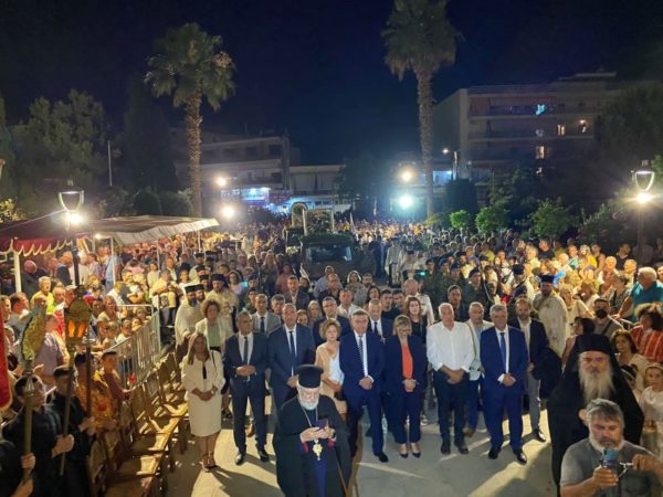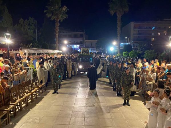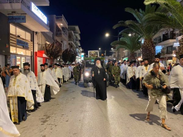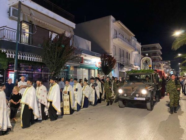 Εν συνεχεία, συνοδεία των Πολιτικών και Στρατιωτικών Αρχών της πόλεως και χιλιάδων πιστών πραγματοποιήθηκε ανά τις οδούς της πόλεως η πάνδημος Λιτάνευσις των Ιερών Εικόνων του Αποστόλου Παύλου και της Παναγίας της Παραμυθίας, φερόμενες επί στρατιωτικών οχημάτων, καθώς και η επί των χειρών των αδελφών των Μοναστικών Αδελφοτήτων της Ιεράς Μητροπόλεώς Κορίνθου λιτάνευσις των Ιερών Λειψάνων των Κορινθίων Αγίων: Τιμίου Προδρόμου,, Αποστόλου Παύλου, Αποστόλων Ιάσονος και Ακύλα, Ιερομαρτύρων Διονυσίου Αρεοπαγίτου, Διονυσίου του Α΄, Επισκόπου Κορίνθου, και Βλασίου, Σεραφείμ Επισκόπου Φαναρίου και Ζαχαρίου Μητροπολίτου Κορίνθου, Αγίων Σωφρονίου Ιεροσολύμων και Μακαρίου Κορίνθου, Μεγαλομάρτυρος Γεωργίου, Αγίας Φωτεινής της Σαμαρείτιδος, των Αγίων Μαρτύρων Κοδράτου και Λεωνίδου και της συνοδείας Αυτού, Οσίων Παταπίου, Νίκωνος του Νέου και Οσίας Υπομονής.