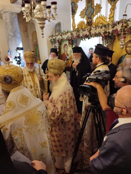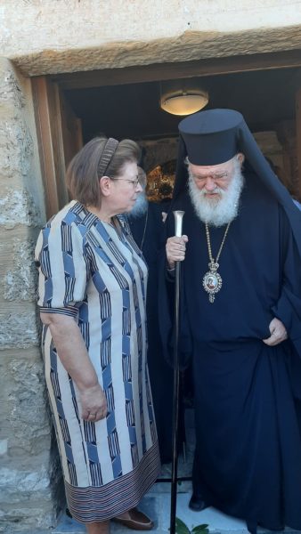 Επίσης, ευχαρίστησε για τη συνεργασία την υπουργό Πολιτισμού Λίνα Μενδώνη, που παρέστη στα εγκαίνια, λέγοντας ότι εκτός του έργου που έχει επιτελέσει για το συγκεκριμένο ναό, έχει συμβάλει σε πολλά άλλα έργα σε όλη τη χώρα και σε αποκαταστάσεις μνημείων.