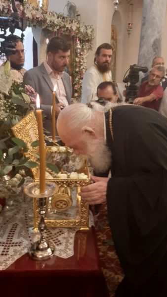 H άφιξη του Μακαριωτάτου Αρχιεπισκόπου Αθηνών και πάσης Ελλάδος κ.κ. Ιερωνύμου στην Περιστερά, ενόψει των εγκαινίων του Ιερού Ναού Αγίου Ανδρέου: