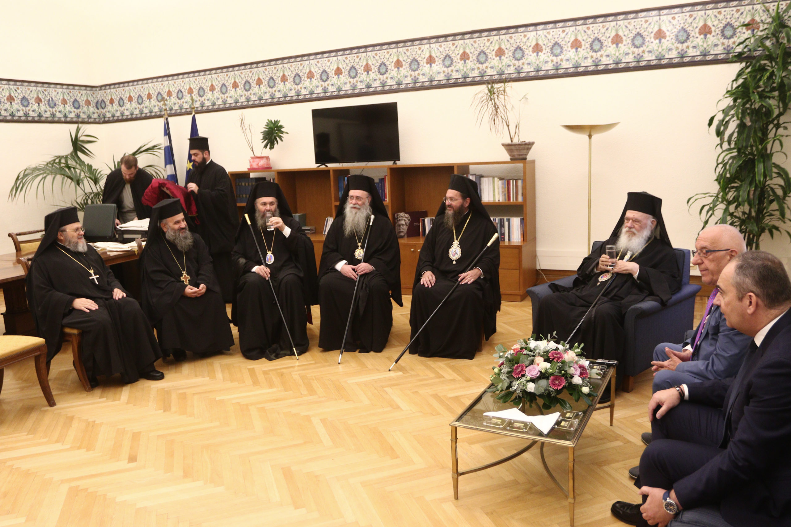 Τον Προκαθήμενο της Εκκλησίας της Ελλάδος και τη συνοδεία του υποδέχθηκε ο Πρόεδρος της Βουλής των Ελλήνων, κ.. Νικήτας Κακλαμάνης.