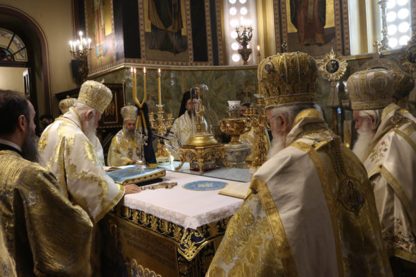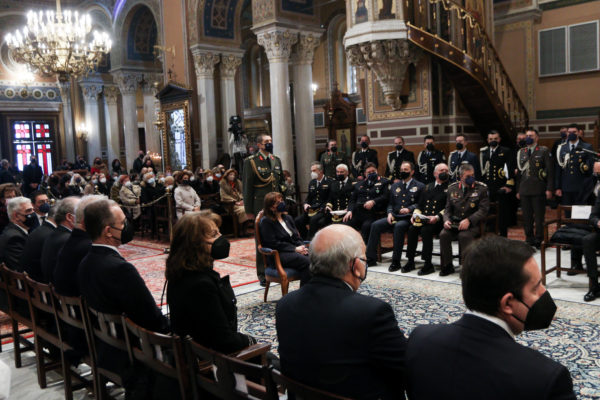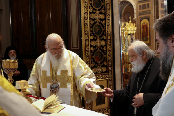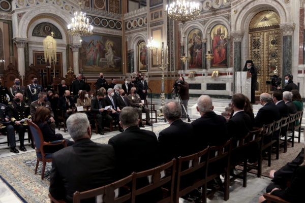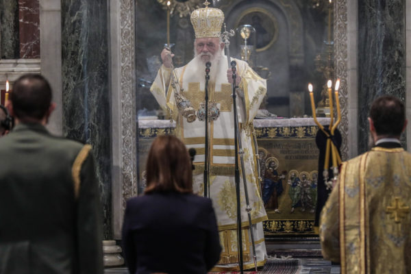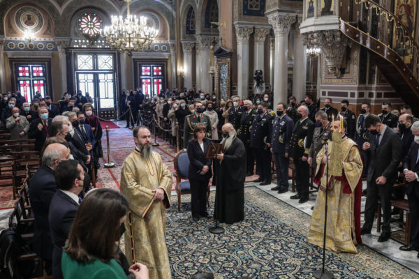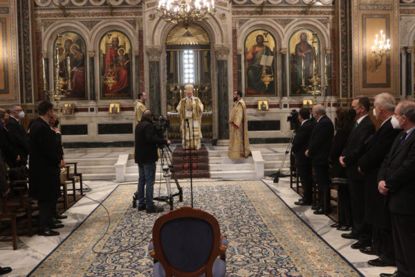 Το μυστήριο της Θείας Ευχαριστίας τέλεσε ο Αρχιεπίσκοπος Αθηνών και πάσης Ελλάδος κ. Ιερώνυμος και παρέστησαν, επίσης, μέλη της Κυβέρνησης, Βουλευτές, Πρέσβεις των Ορθοδόξων Κρατών, εκπρόσωποι των Σωμάτων Ασφαλείας.