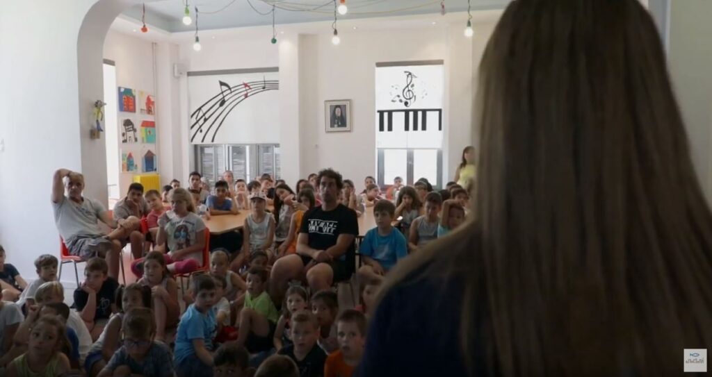 Η Αγγελική Κοσμοπούλου παρουσίασε τις δράσεις που πραγματοποιεί το Ίδρυμα Λασκαρίδη σε 10 νησιά των Κυκλάδων, μέσω του προγράμματος SeaChange Greek Islands, με κύριο στόχο να περιορίσουν και να καταργήσουν σταδιακά τα πλαστικά μιας χρήσης. Στη συνέχεια, ανέλυσε στα παιδιά με ποιο τρόπο τα πλαστικά ρυπαίνουν το θαλάσσιο περιβάλλον και τι συνέπειες έχει αυτό στο περιβάλλον. Έπειτα, η Εκτελεστική Διευθύντρια του Ιδρύματος Λασκαρίδη πρότεινε στα παιδιά διάφορους τρόπους με τους οποίους μπορούν να περιορίσουν την χρήση των πλαστικών μιας χρήσης και τα προσκάλεσε να συμμετέχουν στις δράσεις που διοργανώνει το Ίδρυμα και γίνουν και αυτά μέρος της λύσης.