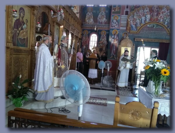 Μετά το πέρας της Θείας Λειτουργίας, οι Αρχιερείς τέλεσαν Τρισάγιο επί του τάφου του κεκοιμημένου Ιεράρχου κειμένου παραπλεύρως του Ιερού Ναού.