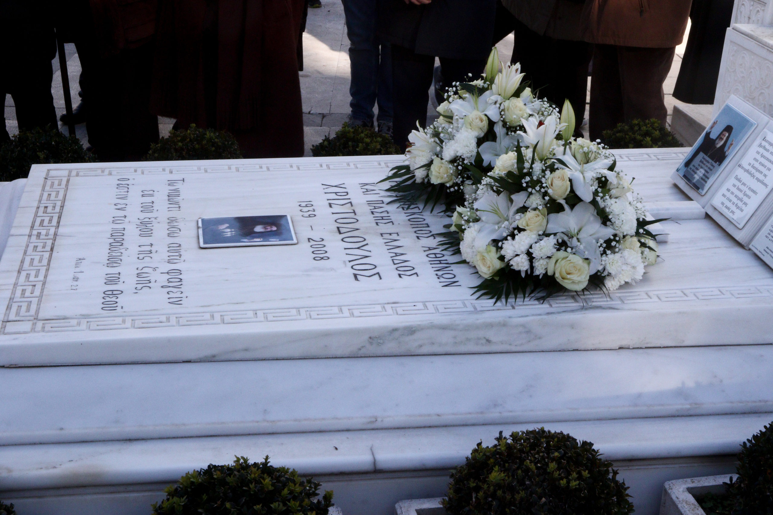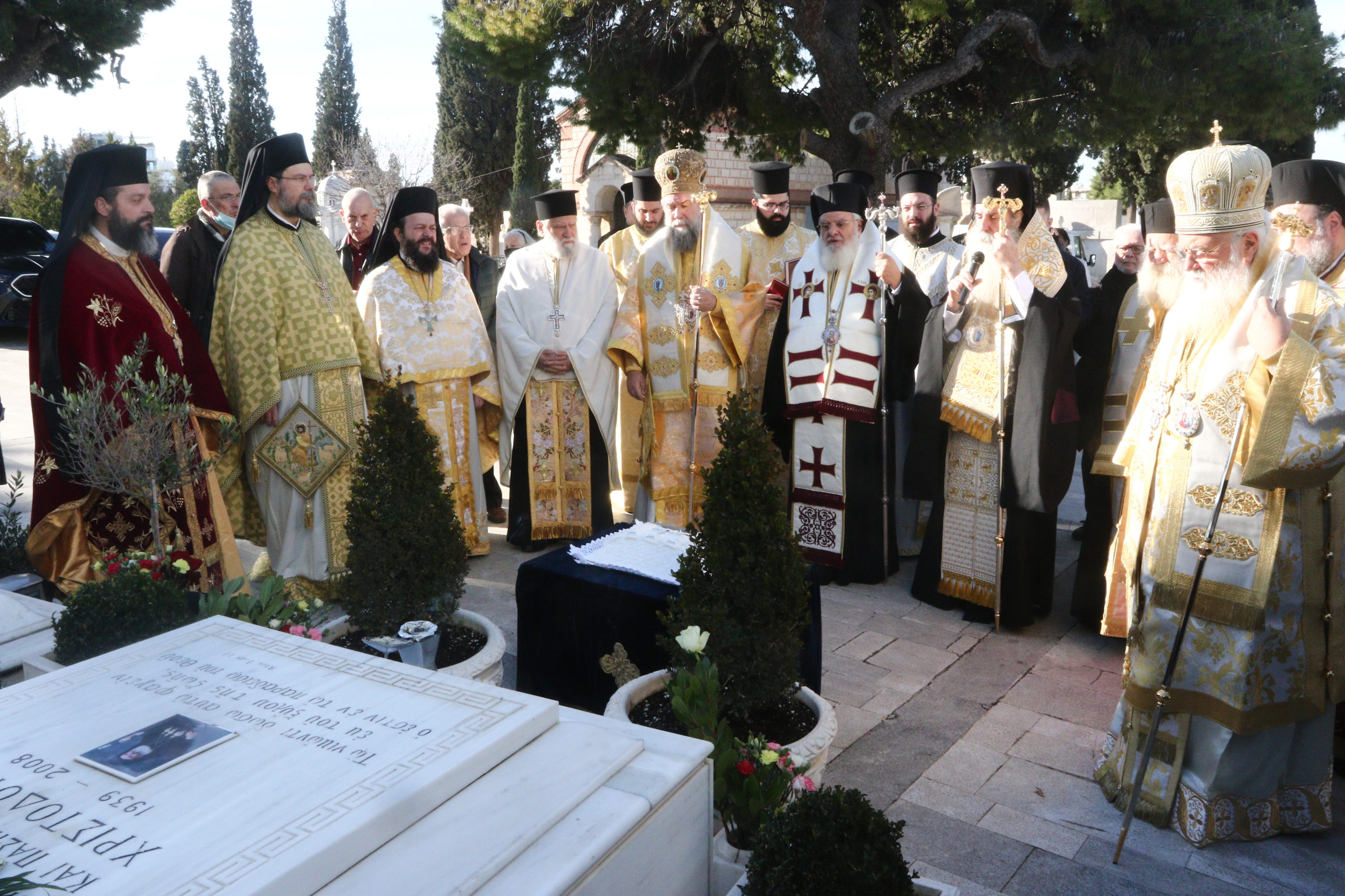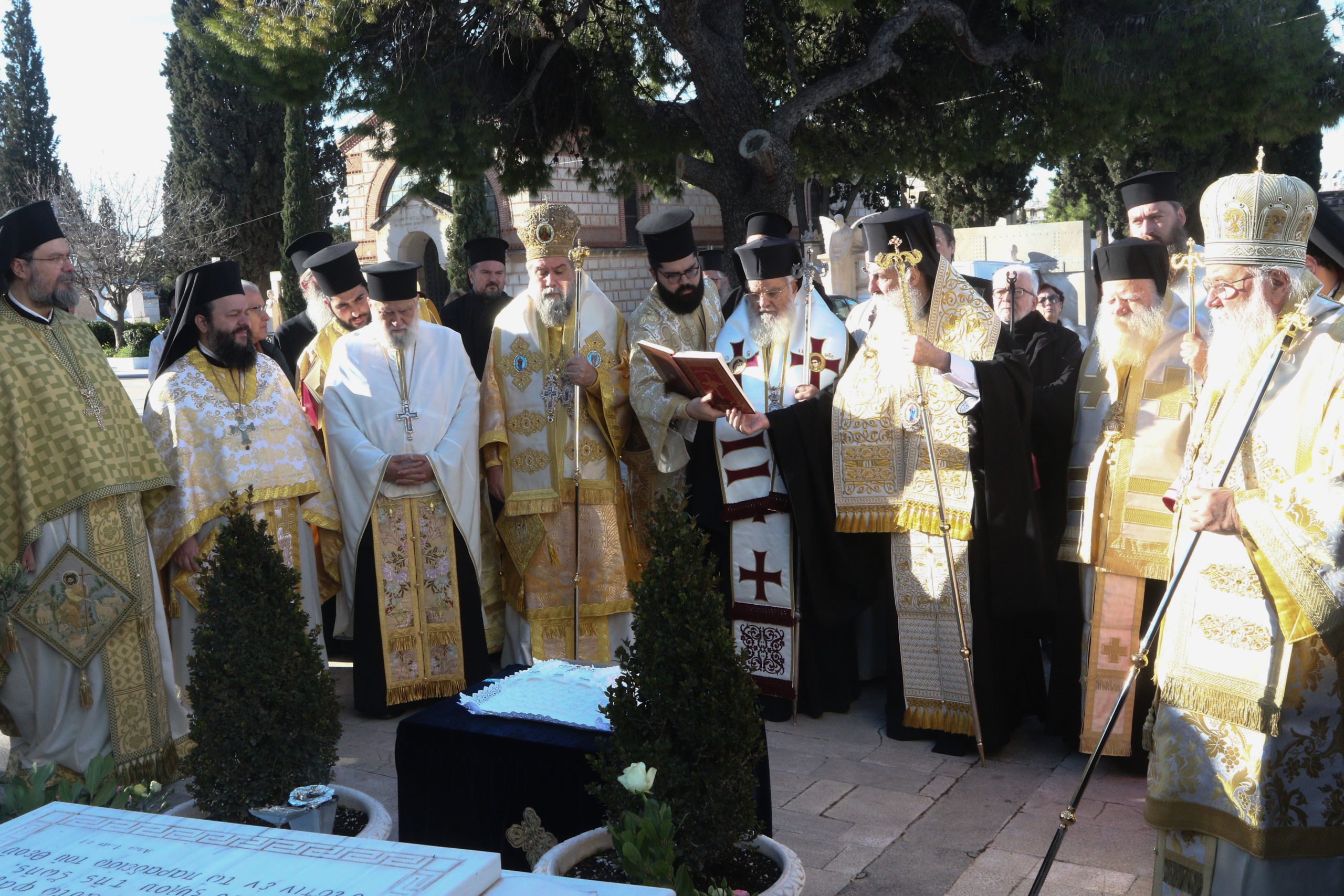 Στον Ιερό Ναό των Αγίων Θεοδώρων, του Α΄ Κοιμητηρίου Αθηνών, τελέσθηκε σήμερα πολυαρχιερατική Θεία Λειτουργία και Μνημόσυνο του μακαριστού Αρχιεπισκόπου Αθηνών και Πάσης Ελλάδος Χριστοδούλου, προεξάρχοντος του Σεβασμιωτάτου Μητροπολίτου Κερκύρας κ. Νεκταρίου, συνιερουργούντων των Σεβασμιωτάτων Μητροπολιτών Σερρών κ. Θεολόγου και Σύρου κ. Δωροθέου Β΄.