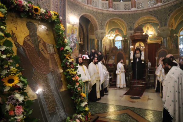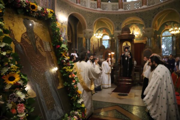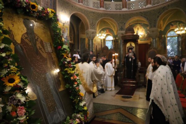 Τον μεθέορτο εσπερινό τέλεσε ο Επισκόπος Θεσπιών κ. Συμεών στον ναό του Αγίου Διονύσιου Αρεοπαγίτου στο Κολωνάκι.