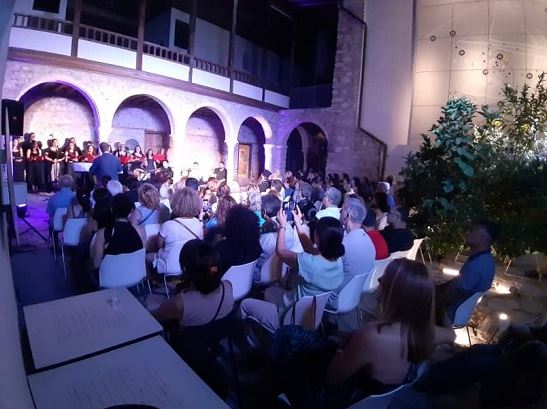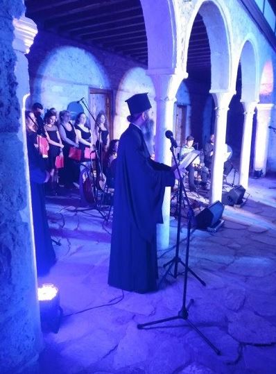 Χαιρετισμό απήθυνε ο Πρωτοπρ. π. Βασίλειος Χρυσόπουλος, εκπρόσωπος του Μακαριωτάτου Αρχιεπισκόπου Αθηνών και πάσης Ελλάδος, κ. κ. Ιερωνύμου, στην εκδήλωση, η οποία πραγματοποιήθηκε το Σάββατο 6 Ιουλίου 2019 στο Αρχοντικό της Αγίας Φιλοθέης στην Πλάκα, στα πλαίσια των πολύ πετυχημένων εκδηλώσεων πολιτισμού από το Ίδρυμα Νεότητος και Οικογένειας της Ι. Αρχιεπισκοπής Αθηνών με το γενικό τίτλο «Καλοκαιρινές βραδιές στο Αρχοντικό της Αγίας Φιλοθέης».