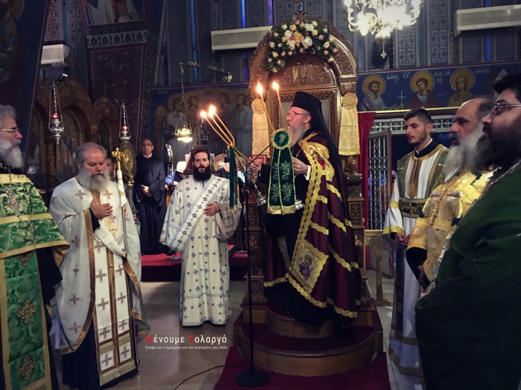 Με μεγαλοπρέπεια και τις δέουσες τιμές τελέστηκε το απόγευμα της Δευτέρας (13/9) ο Μέγας Αρχιερατικός Εσπερινός στον πανηγυρίζοντα Ενοριακό Ιερό Ναό Υψώσεως Τιμίου Σταυρού Χολαργού, χοροστατούντος του Θεοφιλεστάτου Επισκόπου Ανδρούσης κ. Κωνστάντιου.