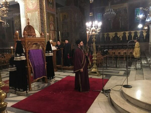 Στην Ακολουθία του Νυμφίου στον Ιερό Ναό Αγίων Κωνσταντίνου και Ελένης Ομονοίας χοροστάτησε σήμερα το απόγευμα ο Αρχιεπίσκοπος Αθηνών και πάσης Ελλάδος κ.κ. Ιερώνυμος. Τον Αρχιεπίσκοπο υποδέχθηκαν οι εφημέριοι του ναού, κλήρος και λαός, ενώ μετά την ακολουθία ευχήθηκε σε όλους καλό Πάσχα.