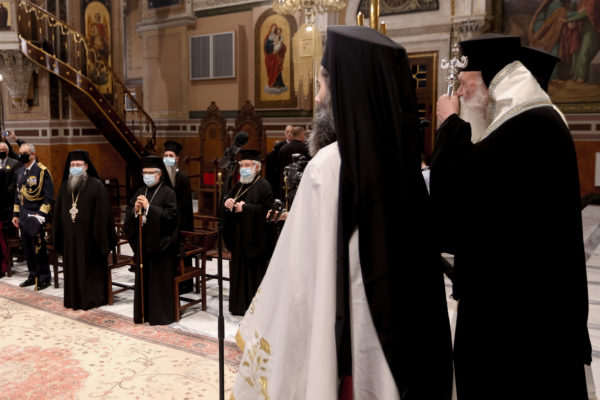Με την παρουσία λίγων επισήμων και πιστών τελέσθηκε το πρωΐ η επίσημη Δοξολογία για την επέτειο της 28ης Οκτωβρίου από τον Αρχιεπίσκοπο Αθηνών και πάσης Ελλάδος κ. Ιερώνυμο στον Ιερό μητροπολιτικό ναό Αθηνών.