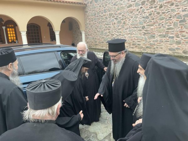 Η Αδελφότητα της Ιεράς Μονής υποδέχθηκε τον Σεπτό Προκαθήμενο με σεβασμό και τιμή κατά τα μοναχικά θέσμια, παρέθεσε δε την καθιερωμένη μοναχική δοχή στον Μακαριώτατο και τη συνοδεία του. Ο Μακαριώτατος ευχαρίστησε την Αδελφότητα για την υποδοχή και φιλοξενία, επαίνεσε το έργο της Ιεράς Μονής, ιδίως στον πνευματικό τομέα, και ευχήθηκε διαρκή την κατά Χριστόν προκοπή και τη Θεία Ευλογία.