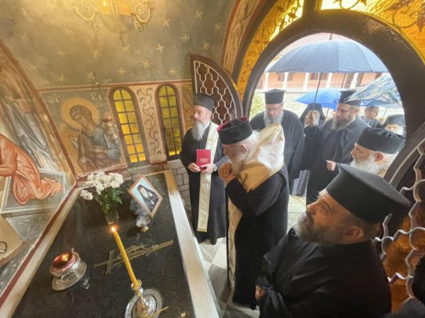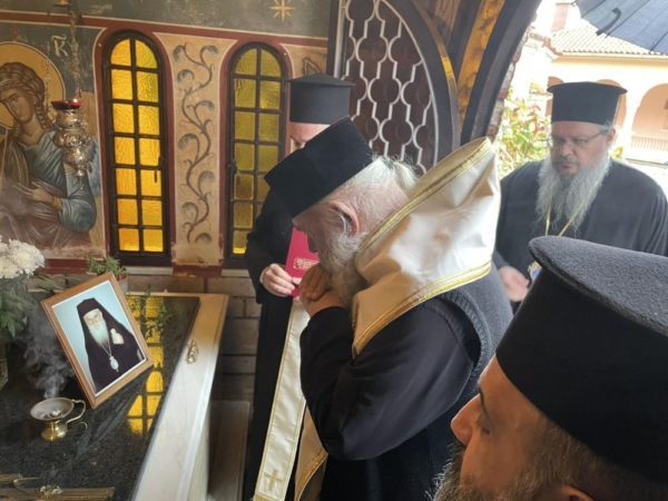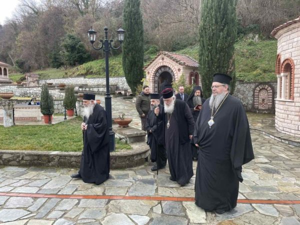 Ο Μακαριώτατος ξεναγήθηκε στους χώρους της Μονής, στο υπό αγιογράφηση Καθολικό, στο υπό κατασκευή υπαίθριο μουσείο, στη φιάλη και τέλος τέλεσε Τρισάγιο στον τάφο του μακαριστού Μητροπολίτου Λαρίσης κυρού Θεολόγου.