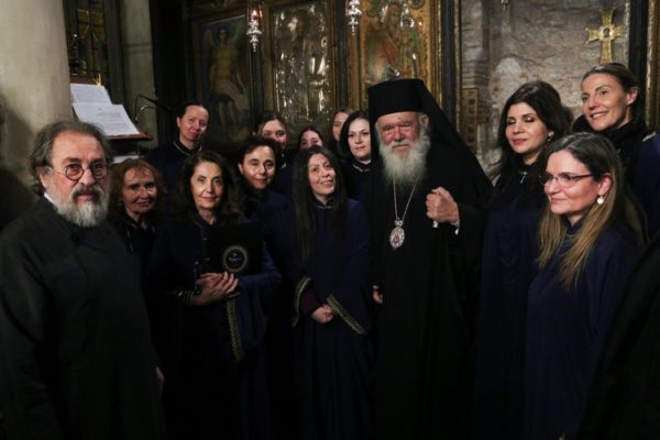 Στην ακολουθία έψαλε η γυναικεία βυζαντινή χορωδία «Ψάλτριες» υπό τη Διεύθυνση της Νεκταρίας Καραντζή.