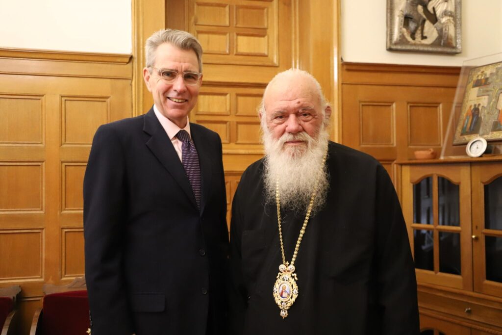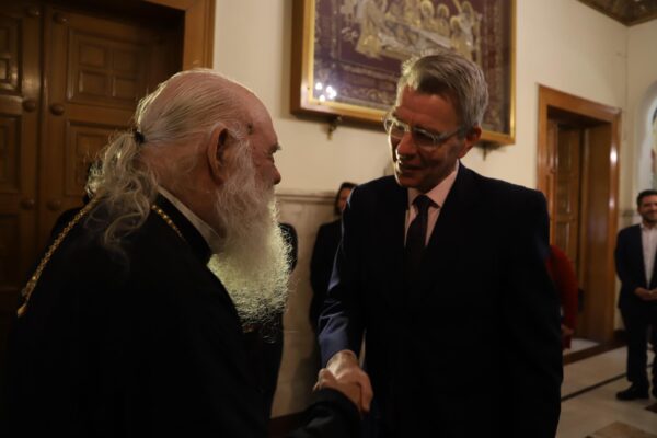 Νωρίτερα, ο Μακαριώτατος συναντήθηκε στο Μέγαρο της Ιεράς Αρχιεπισκοπής Αθηνών με τον Πρέσβη των ΗΠΑ Τζέφρι Πάιατ.