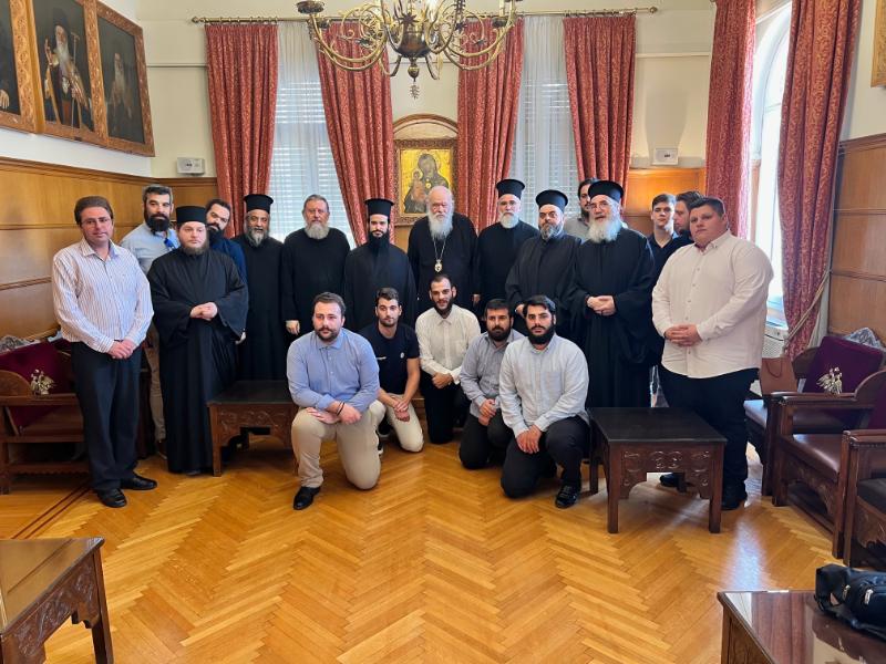 Κατόπιν, τον Αρχιεπίσκοπο επισκέφθηκαν Ιεροσπουδαστές και Καθηγητές της Σχολής Μαθητείας Υποψηφίων Κληρικών (ΣΜΥΚ) της Ριζαρείου Εκκλησιαστικής Σχολής με αφορμή την λήξη του 1ου έτους λειτουργίας της Σχολής.