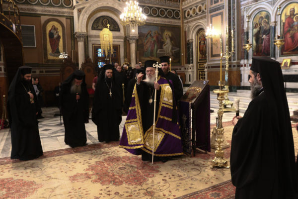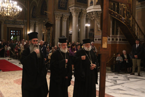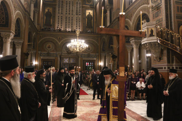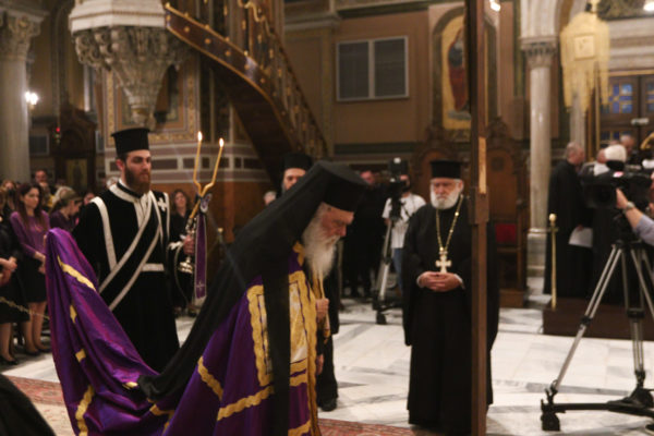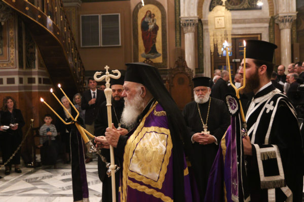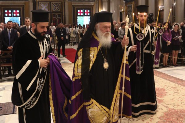 Στον Ιερό Μητροπολιτικό Ναό Αθηνών χοροστάτησε την Μεγάλη Πέμπτη 2 Μαΐου 2024 στην Ακολουθία των Αχράντων Παθών του Κυρίου ο Αρχιεπίσκοπος Αθηνών και πάσης Ελλάδος κ.κ. Ιερώνυμος παρουσία του Πρωθυπουργού κ. Κυριάκου Μητσοτάκη. Συγχοροστάτησαν οι Επίσκοποι Ευρίπου κ. Χρυσόστομος και Ταλαντίου κ. Επιφάνιος.