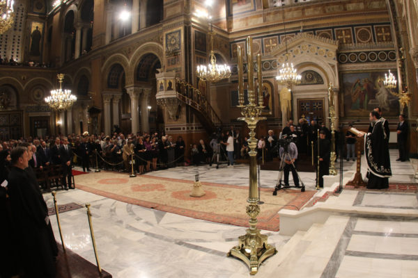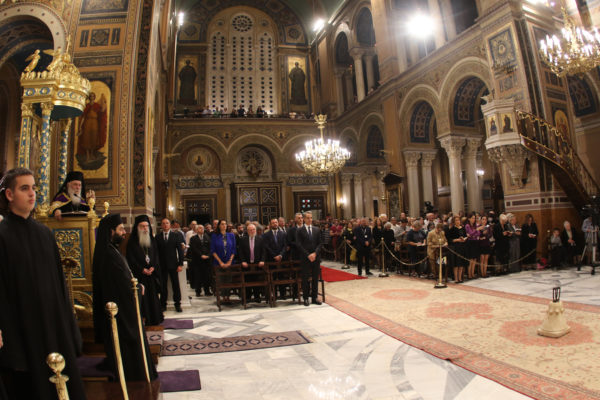 Ο Πρωθυπουργός έφτασε στη Μητρόπολη Αθηνών στις 20:30, ενώ χαιρετήθηκε με τον Αρχιεπίσκοπο διά χειραψίας.