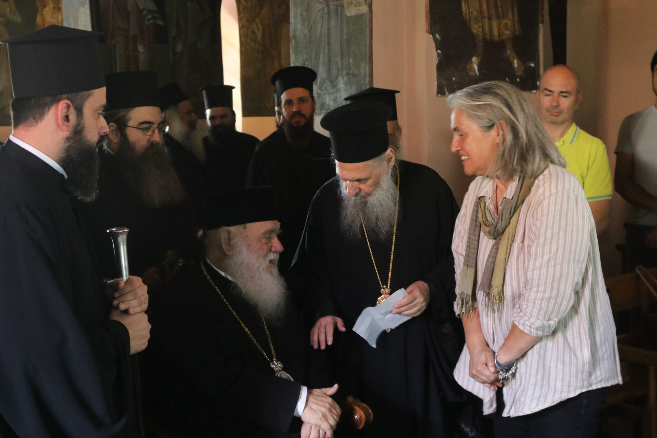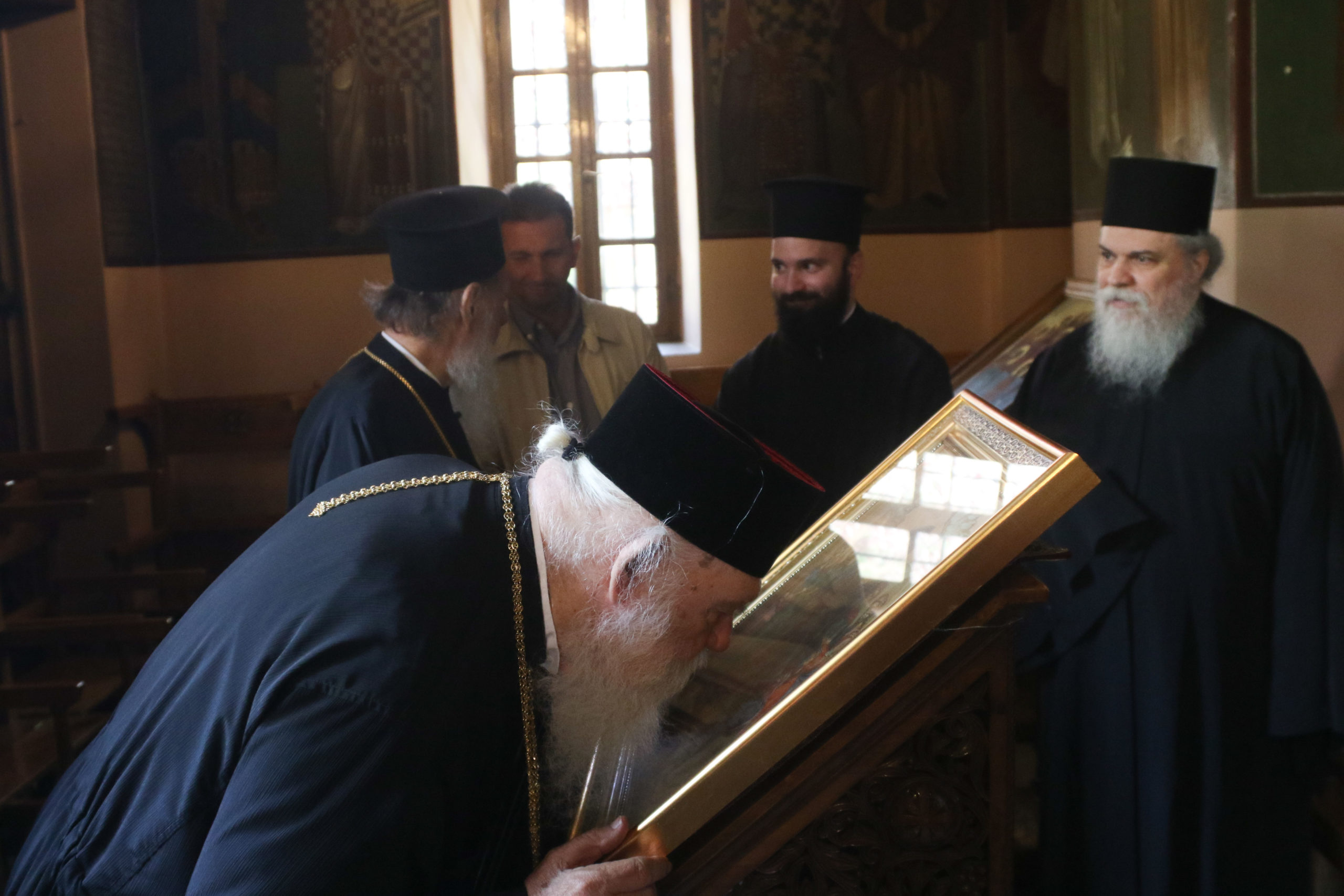 Τον Αρχιεπίσκοπο υποδέχθηκαν ο Ηγούμενος της Μονής, Μητροπολίτης Θαυμακού κ. Ιάκωβος, οι μοναχοί, αλλά και οι εκπρόσωποι της αρμόδιας Εφορείας Αρχαιοτήτων.