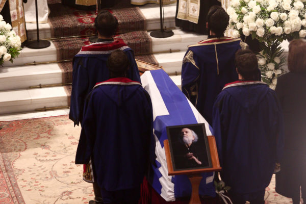 Με συγκίνηση και σεβασμό στον άνθρωπο και την υψηλή συμβολή του στον παγκόσμιο μουσικό πολιτισμό, πλήθος κόσμου αποχαιρέτησε από το μεσημέρι τον μεγάλο συνθέτη στο παρεκκλήσι της Μητρόπολης όπου εκτέθηκε η σορός για λαϊκό προσκύνημα.