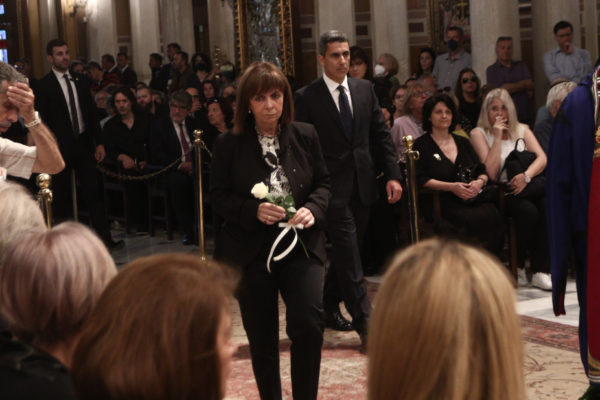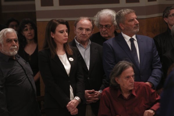 Στην Εξόδιο Ακολουθία παραβρέθηκαν, μεταξύ άλλων, η ΠτΔ Κατερίνα Σακελλαροπούλου, ο ΓΓ της ΚΕ του ΚΚΕ Δημήτρης Κουτσούμπας και η Αλέκα Παπαρήγα, ο Περιφερειάρχης Αττικής Γιώργος Πατούλης, ο Λάκης Χαλκιάς, η Μαρίζα Κωχ, ο Γιώργος Νταλάρας και πολλοί άλλοι από τον καλλιτεχνικό κόσμο