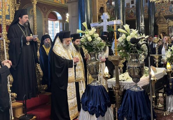 Τόν συνοδεύουν οἱ εὐχές τοῦ Παναγιωτάτου Ἀρχιεπισκόπου Κωνσταντινουπόλεως Νέας Ρώμης καί Οἰκουμενικοῦ Πατριάρχου κ.κ. Βαρθολομαίου, τόν ὁποῖον ἔχω τήν ἐξαιρετική τιμή νά ἐκπροσωπῶ, κατά τήν πενθηρά καί ἐλπιδοφόρα συνάμα αὐτή ἐξόδιο Ἀκολουθία, κατά τήν ὁποία καλούμαστε «νά μή μᾶς λυπεῖ ὁ χωρισμός, ἀλλά νά μᾶς εὐφραίνει ἡ ἐλπίδα» καί ἡ ἀγάπη καί ἡ προσευχή.