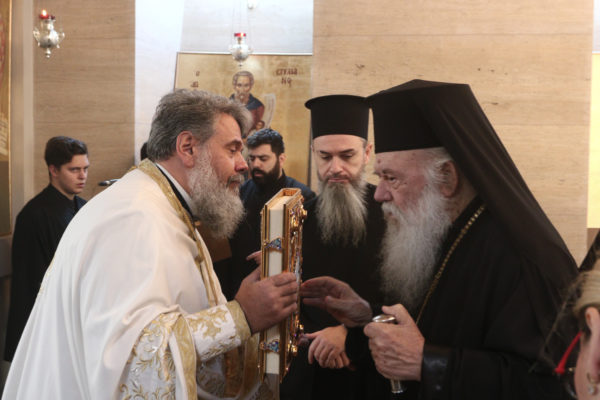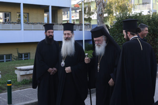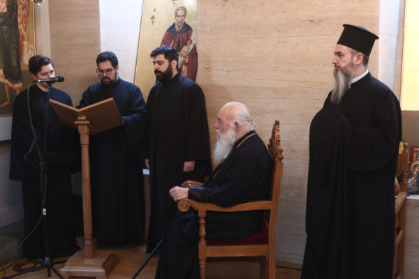 Τον Αρχιεπίσκοπο συνόδευαν ο Γενικός Αρχιερατικός Επίτροπος, Αρχιμανδρίτης Ιάκωβος Ανδριόπουλος και ο Αρχιδιάκονος Ιωάννης Μπούτσης.