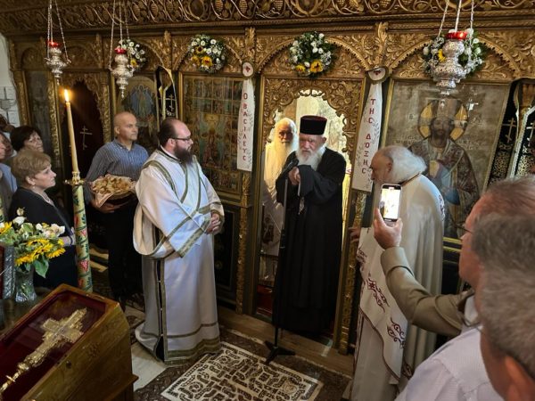 Ο Μακαριώτατος παρέστη συμπροσευχόμενος στην Πανηγυρική Θεία Λειτουργία, στην οποία προεξήρχε ο Σεβασμιώτατος Μητροπολίτης Αργολίδος κ. Νεκτάριος.