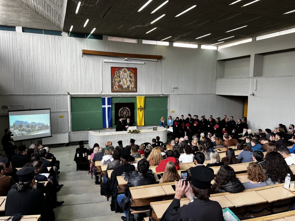 Η τελετή Υποδοχής των πρωτοετών φοιτητών και φοιτητριών ακαδημαϊκού έτους 2023-24 της Θεολογικής Σχολής, πραγματοποιήθηκε σήμερα το μεσημέρι στο Κεντρικό Αμφιθέατρο «Χρυσόστομος Παπαδόπουλος», στο Κτήριο Θεολογικής Σχολής στην Πανεπιστημιούπολη Ε.Κ.Π.Α..
