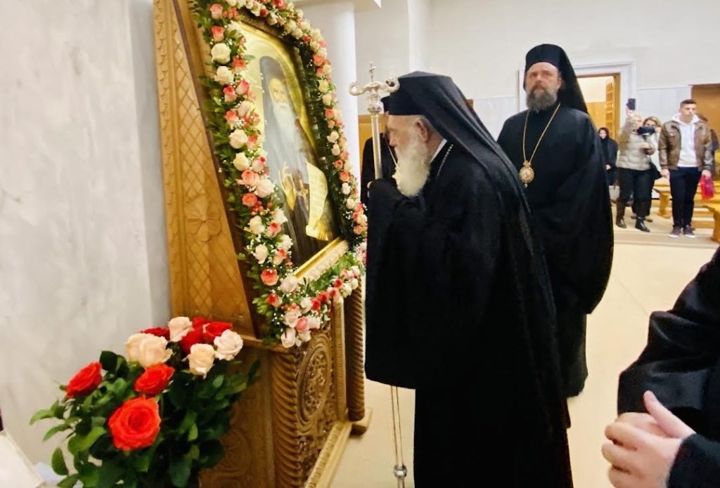 Τον Αρχιεπίσκοπο συνόδευαν ο Πρωτοσύγκελος της Αρχιεπισκοπής, Αρχιμανδρίτης Βαρνάβας Θεοχάρης και ο Αρχιδιάκονος Ιωάννης Μπούτσης.
