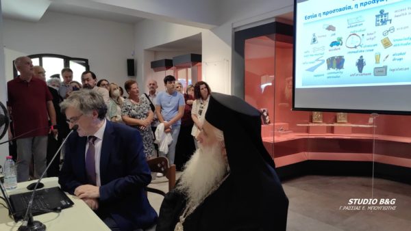 Ακολούθησε αγιασμός από τον Μητροπολίτη Αργολίδος κ. Νεκτάριο για τους λειτουργούς Υγείας και κατόπιν ομιλία από τον Σωτήρη Τσιόδρα, καθηγητή Ιατρικής με θέμα: «Δημόσια Υγεία και Κλινική Ιατρική».