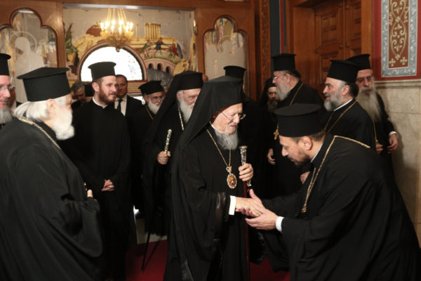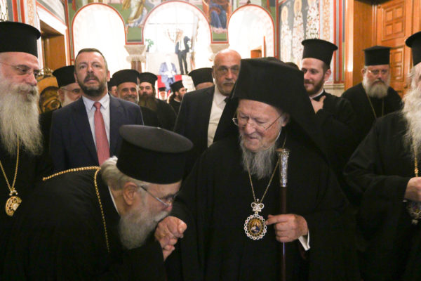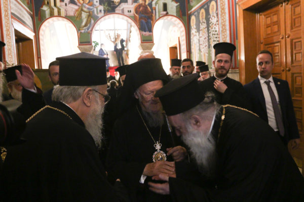 Ο Αρχιεπίσκοπος καλωσόρισε τον Οικουμενικό Πατριάρχη και τόνισε: «Χαίρομαι που σας έχουμε κοντά μας για τις δραστηριότητες σας και τα μεγάλα θέματα που θα σας απασχολήσουν. Είναι καλό να συναντιόμαστε συχνότερα και να ανταλλάσσουμε απόψεις».