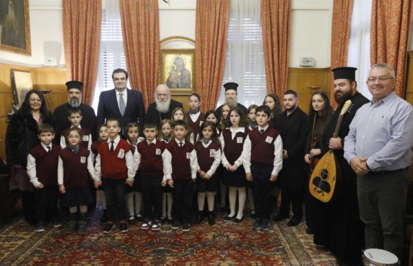 Μετά την κατ’ ιδίαν συνάντησή τους, ο Μακαριώτατος και ο κ. Πιερρακάκης είχαν την ευκαιρία να ακούσουν τα χριστουγεννιάτικα κάλαντα από ομάδες διάφορων οργανισμών και φορέων.