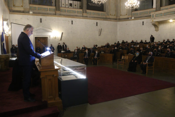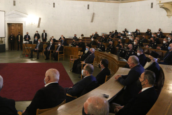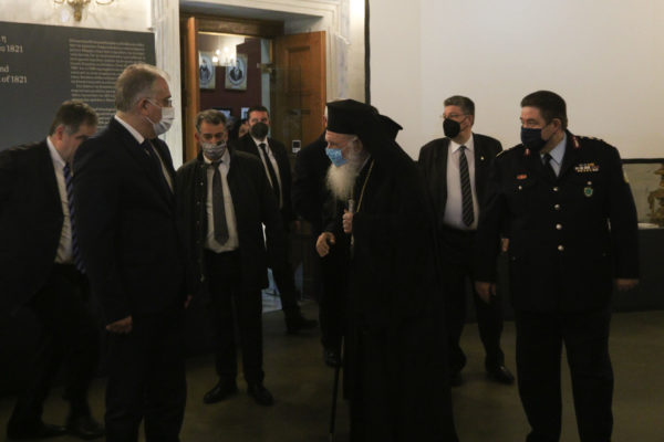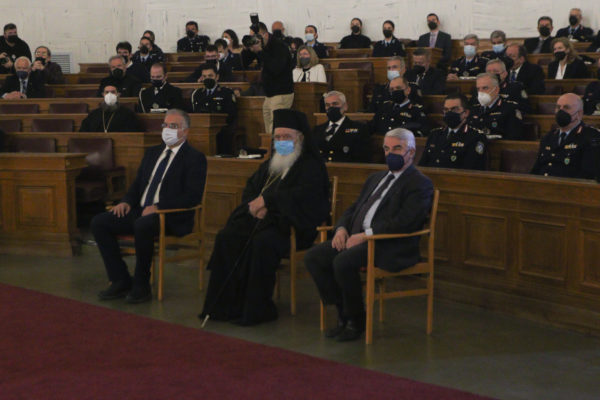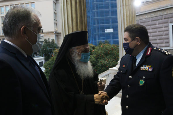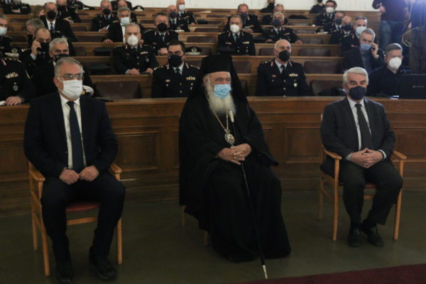 Στην παρουσίαση του αφιερωματικού τόμου του Πολιτιστικού Κέντρου Ελληνικής Αστυνομίας και του Πανεπιστημίου Πελοποννήσου, με τίτλο: «Αναζητώντας τον ένοχο και επιβάλλοντας την τάξη. Η αστυνομία σε αναζήτηση ρόλου τα χρόνια του αγώνα της ανεξαρτησίας (1821-1830)», παραβρέθηκε το απόγευμα ο Αρχιεπίσκοπος Αθηνών και πάσης Ελλάδος κ. Ιερώνυμος.