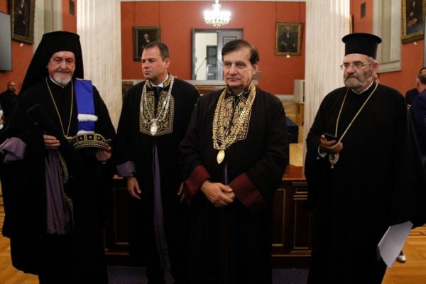 Παρουσία του Αρχιεπισκόπου Αθηνών και πάσης Ελλάδος κ.κ. Ιερωνύμου πραγματοποιήθηκε χθες το απόγευμα η τελετή αναγόρευσης του Μητροπολίτη Γέροντος Χαλκηδόνος κ. Εμμανουήλ σε Επίτιμο Διδάκτορα του Τμήματος Κοινωνικής Θεολογίας και Θρησκειολογίας της Θεολογικής Σχολής του Πανεπιστημίου Αθηνών.