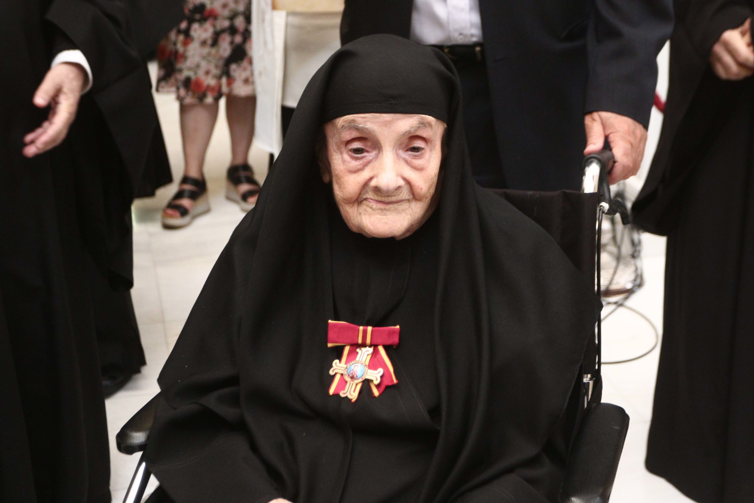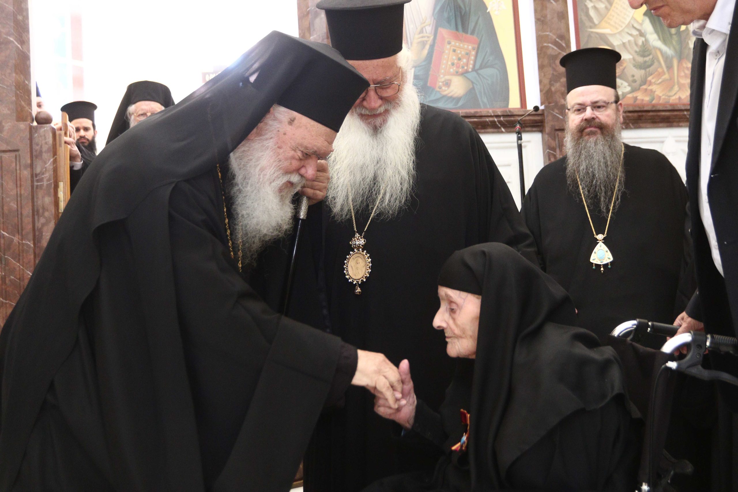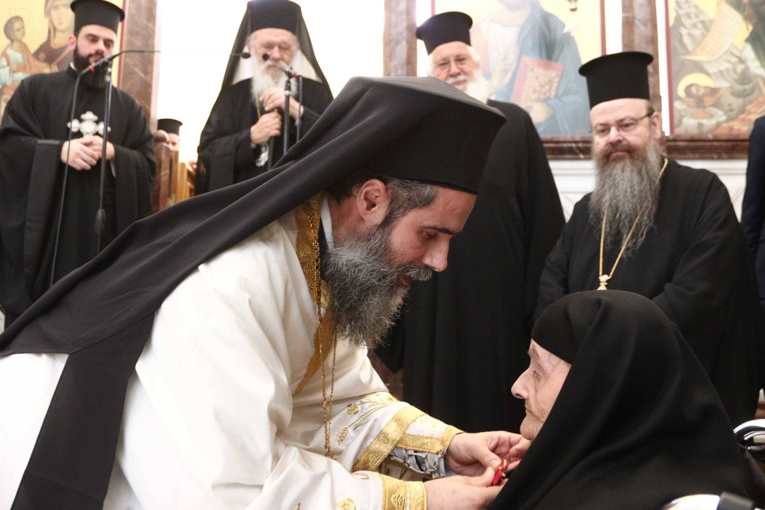 Τέλος, ο Αρχιεπίσκοπος, απένειμε το παράσημο της Αγίας Οσιομάρτυρος Φιλοθέης της Αθηναίας, στην ηγουμένη του Ιερού Ησυχαστηρίου του Αγίου Πορφυρίου, Γερόντισσα Φεβρωνία, σημειώνοντας, την μεγάλη συνεισφορά της στο ποιμαντικό και κτιριακό έργο της Μονής.