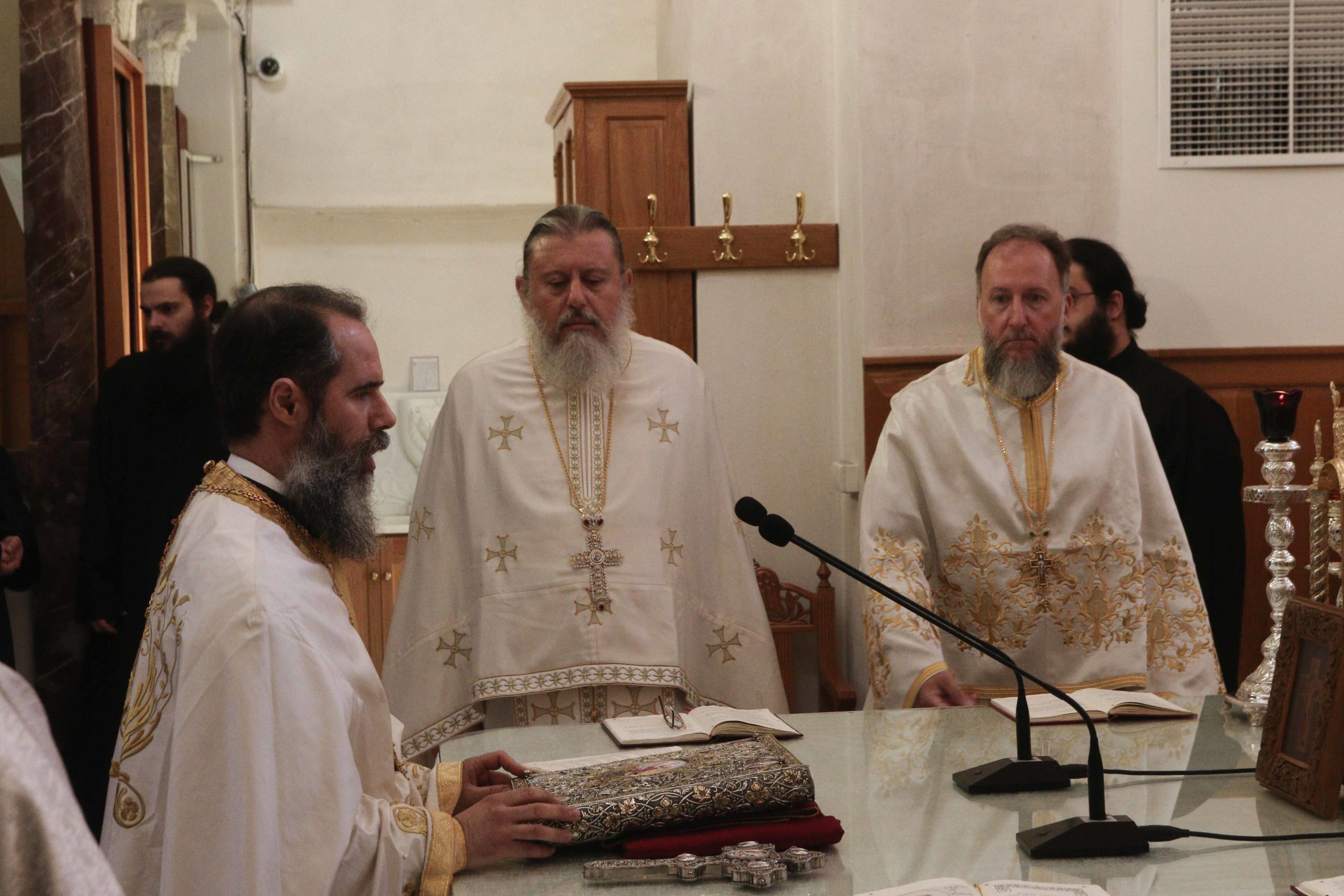 Στο Μυστήριο της Θείας Ευχαριστίας συμμετείχαν ο Αρχιγραμματέας της Ιεράς Συνόδου της Εκκλησίας της Ελλάδος, Αρχιμανδρίτης Ιωάννης Καραμούζης, ο Πρωτοσύγκελλος της Αρχιεπισκοπής Αθηνών, Αρχιμανδρίτης Βαρνάβας Θεοχάρης, ο οποίος κήρυξε και τον Θείο Λόγο, ο Διευθυντής του Ιδρύματος Ποιμαντικής Επιμόρφωσης της Αρχιεπισκοπής Αθηνών, Αρχιμανδρίτης Θεολόγος Αλεξανδράκης, ο αναπληρωτής Αρχιερατικός Επίτροπος της Αρχιεπισκοπής Αθηνών, Αρχιμανδρίτης Ευγένιος Παντζαρίδης, ο Πρωτοπρεσβύτερος Εμμανουήλ Παπαμικρούλης, Iερατικός Προϊστάμενος του Ησυχαστηρίου του Οσίου Πορφυρίου, ο Αρχιδιάκονος π. Δημήτριος Φωκιανός και ο Ιεροδιάκονος π. Ιερώνυμος Καραπιδάκης.